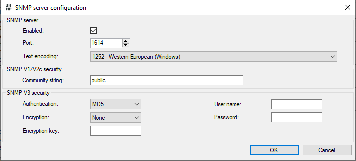 Here you can specify the port over which the SNMP server will communicate. The default value is 1614.