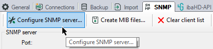In the ibaHD Manager, SNMP tab, select the menu button Configure SNMP server….
