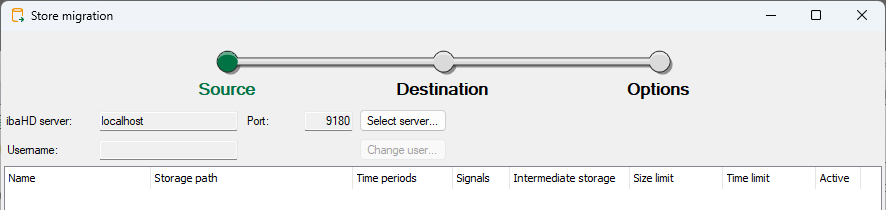 During the migration, the ibaPDA server cannot write any data to the source HD store. The store on the source HD server is deactivated.