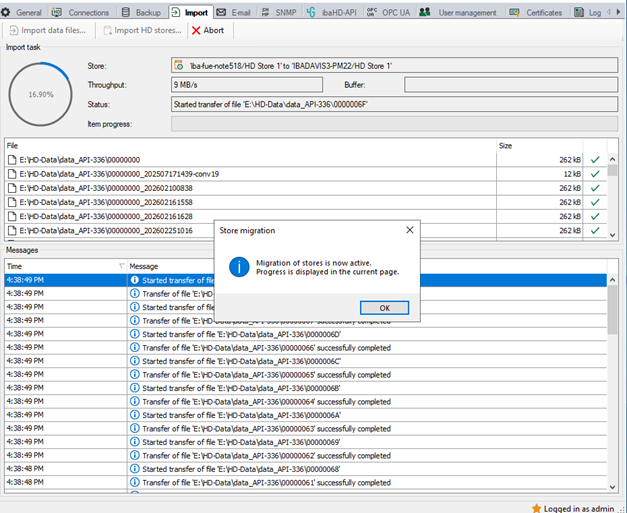 Select ibaHD Manager – Import tab – <Import HD stores>.