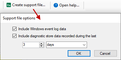 Should you need support from iba, you can find all of the important information for support via the menu command Create support file⦠in the General tab of ibaHD Manager.