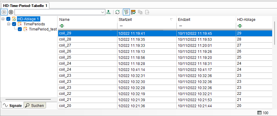 innerhalb eines ibaHD-Servers anzeigen. Eine Time-Period-Tabelle wird geöffnet, wenn Sie im ibaPDA-Client auf das Icon
