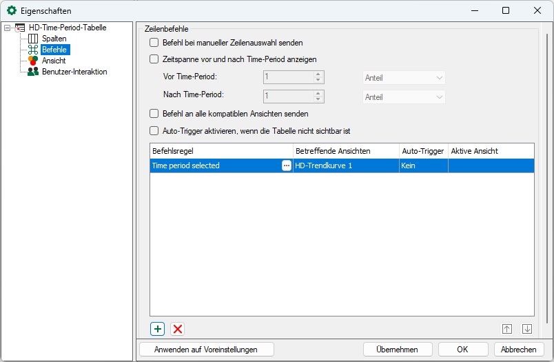 Wenn Sie wollen, dass nur bestimmte HD-Trendkurven die ausgewählte Time-Period anzeigen, deaktivieren Sie die Option Befehl an alle kompatiblen Ansichten senden und konfigurieren Sie geeignete Befehlsregeln.