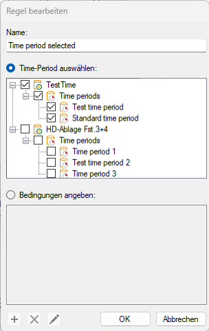 • Befehlsregel: Die Regel legt fest, für welche Time-Period der Befehl gilt. Sie können dafür Time-Period-Ablagen auswählen oder Bedingungen für Spalten definieren.