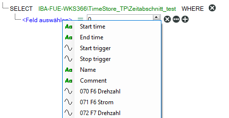 Hinter den Elementen der Abfrage befinden sich verschiedene Buttons, mit denen die Abfrage erweitert oder verändert werden kann: