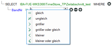 Abhängig vom ausgewählten Feld (Zahlen- oder Textfeld) wird bei Klick auf das grüne Gleichheitszeichen eine Liste von Operatoren angezeigt. Wählen Sie den erforderlichen Operator aus.