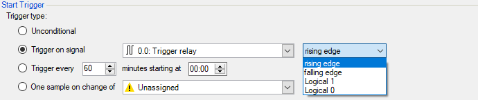 For analog signals, you can choose between level or edge triggers including a predefined level (field 3).