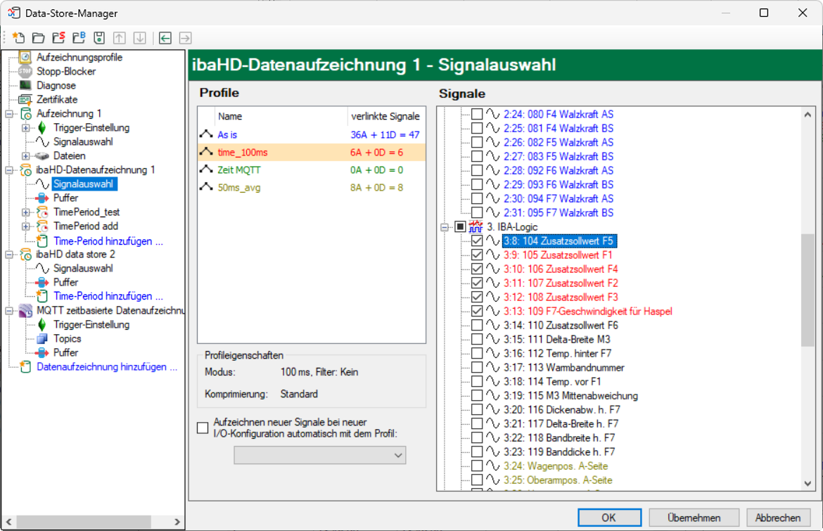 Sie können wie bei einer herkömmlichen Datenaufzeichnung Signale den Profilen zuweisen.