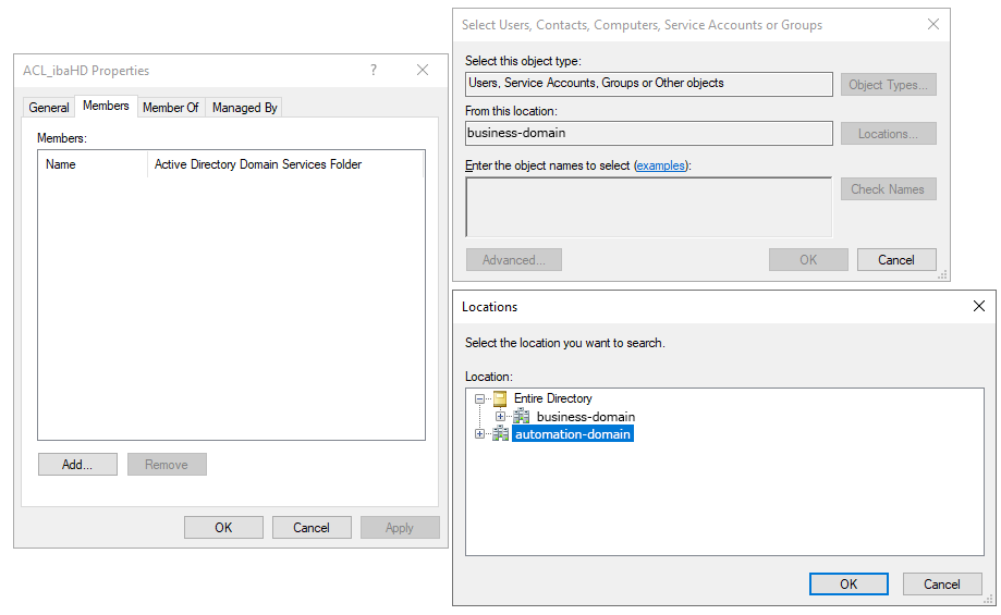 Add the users from the second domain automation-domain who are to be granted access to the ACL_ibHD group you have just created. Make sure that you have selected the correct domain in the user search.