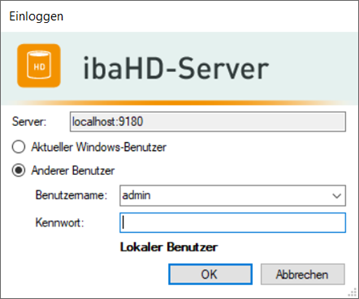 Sobald Sie sich mit dem ibaHD-Server verbinden wollen, erscheint ein Anmeldedialog.