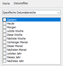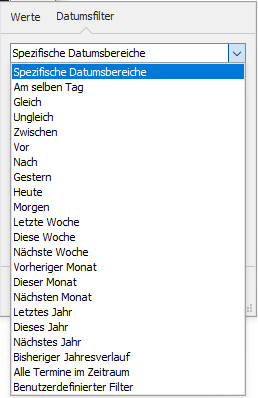 In Spalten, die nur Datumswerte enthalten, stehen vielfältige Filter für Zeiträume und Tage zur Auswahl.