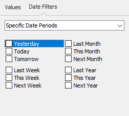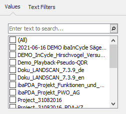 Values, to search for a value or to select one or more values (similar to MS Excel)