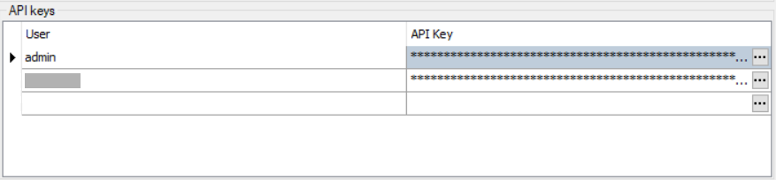 The API key configuration area shows a list of all users configured in the ibaHD-Server user administration. You can generate an API key for each user. This is only required if user management is activated.
