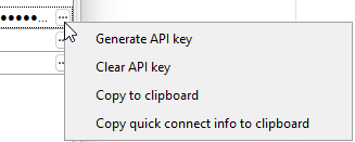 button, a context menu opens to manage the API key and the user’s connection information: