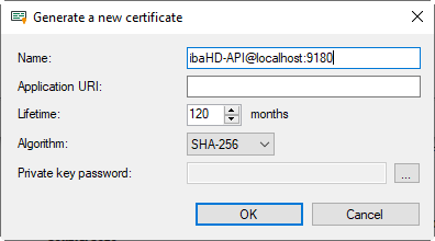 When you generate a certificate in ibaHD-Server, the "Is CA" attribute in the certificate is set to "True" by default. However, some TLS implementations do not accept this setting, which can lead to problems when using the certificates. iba recommends using your own certificates that comply with the standards and requirements of your local IT policies. |