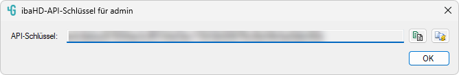 Um den API-Schlüssel des aktuell angemeldeten Benutzers abzurufen, klicken Sie auf den Button <Anzeige API-Schlüssel ...> am oberen Rand des Registers ibaHD-API im ibaHD Manager.