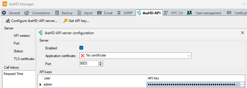 To configure the interface, click on the <Configure ibaHD-API server…> button. The ibaHD-API server configuration dialog opens.