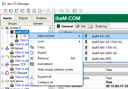 Right-click on the "ibaM-COM" link and select Add module.