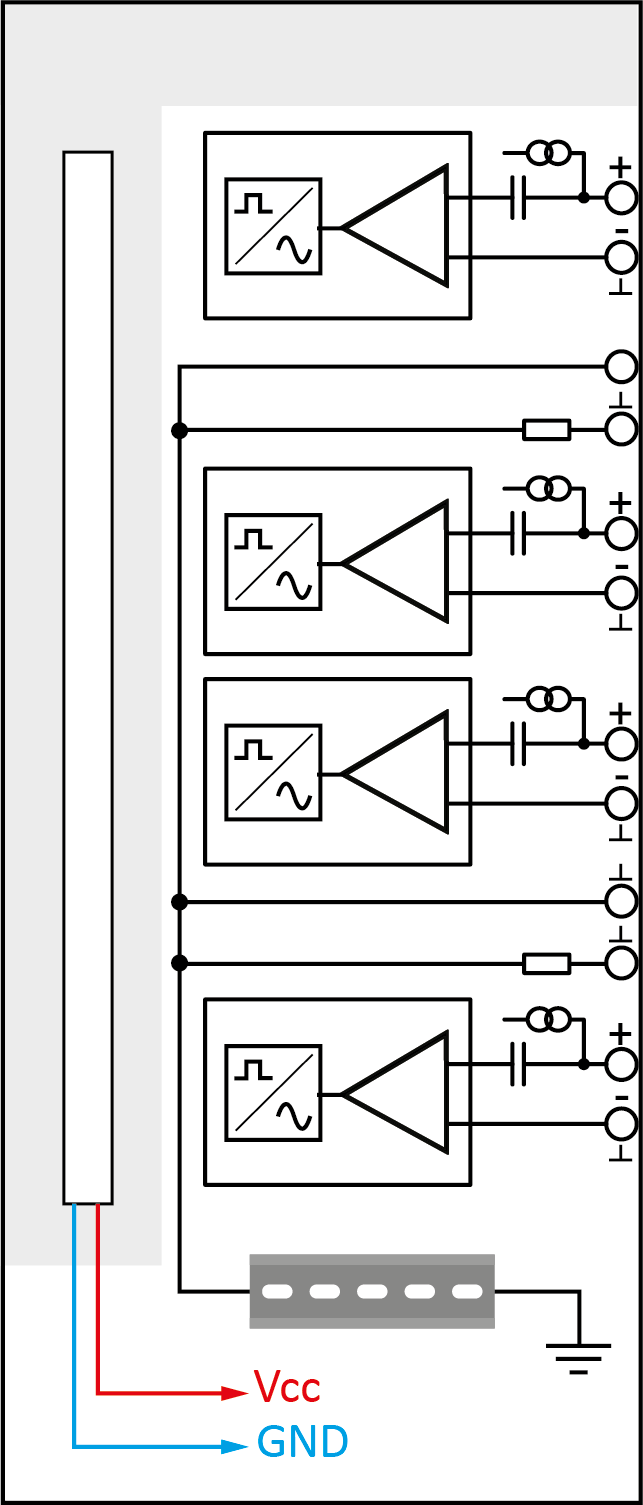 4 input signals can be connected here (0 ... 3), each of which must be bipolar plus ground. Each channel is connected using a two-wire system.