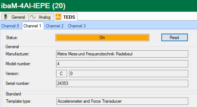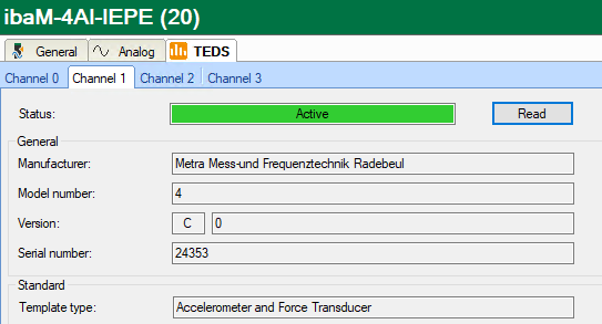 The TEDS data is only read and compared. Data, especially calibration data, is not automatically transferred to the ibaPDA configuration.