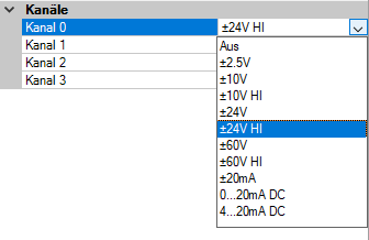 Aktivieren Sie den Kanal durch Auswahl des Messbereichs oder deaktivieren Sie den Kanal in der Auswahlliste.