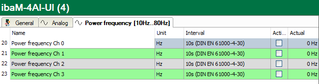 You can select the measurement interval from a dropdown list: 1s or 10 s (according to DIN EN 61000‑4‑30).