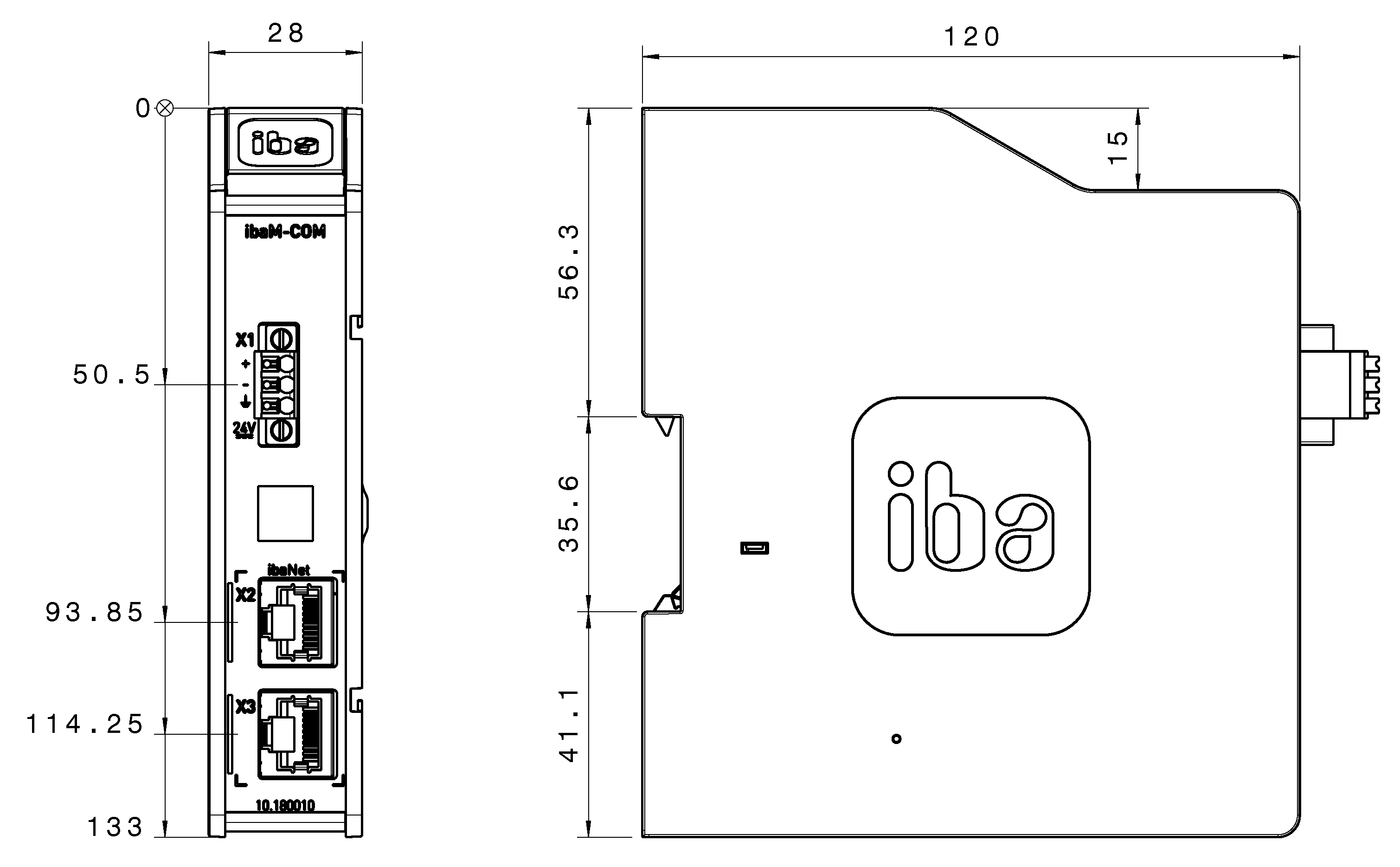 Abmessungen ibaM-COM, Maße in mm