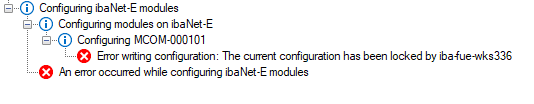 If a module configuration is locked or blocked and another ibaPDA system wants to access this module or use it for recording, the following messages appear depending on the situation: