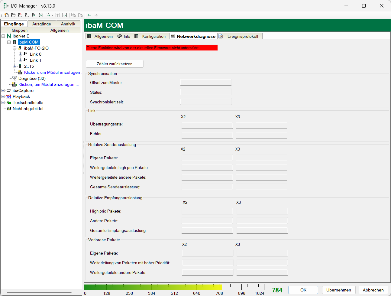 HP synchronized: Das System ist mit einer ibaNet-E HP Synchronisationsgenauigkeit synchronisiert.