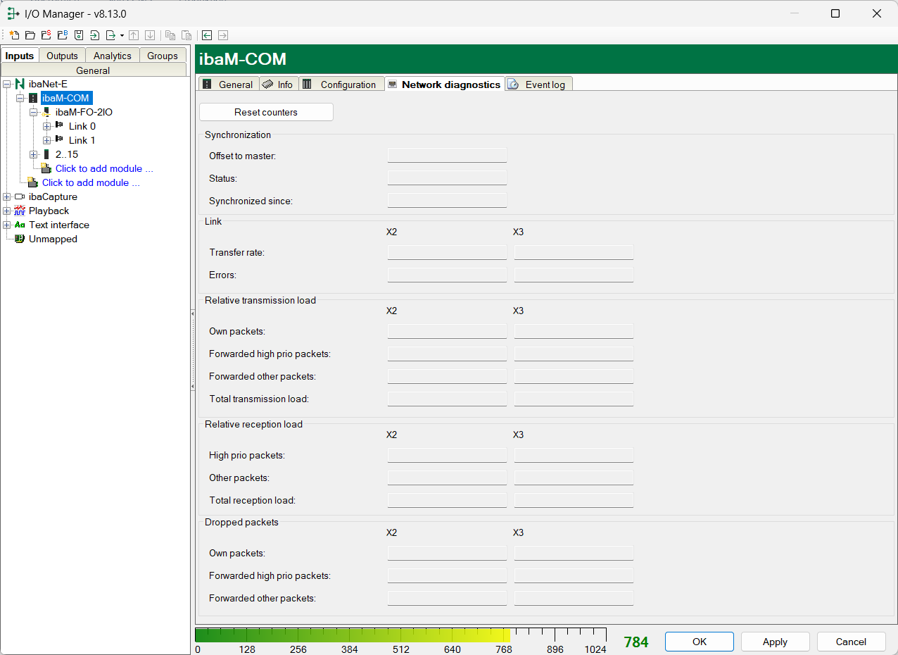 HP synchronized: The system is synchronized with an ibaNet-E HP synchronization accuracy.
