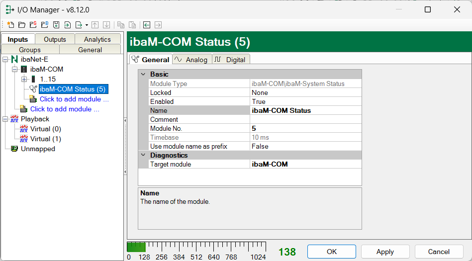 This internal reference number of the module determines the order of the modules in the signal tree of ibaPDA client and ibaAnalyzer.