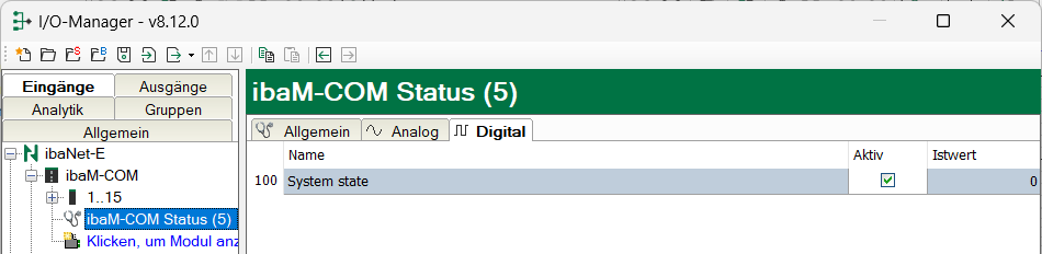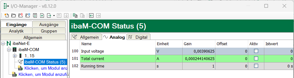 In den Registern Analog und Digital werden automatisch die verfügbaren Signale angelegt.