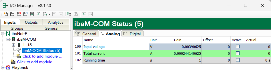 The available signals are automatically generated in the Analog and Digital tabs.