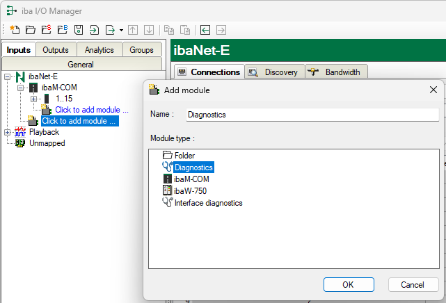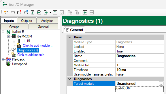 A diagnostic module only becomes active after it has been assigned to an ibaM-COM module and provides its connection information.