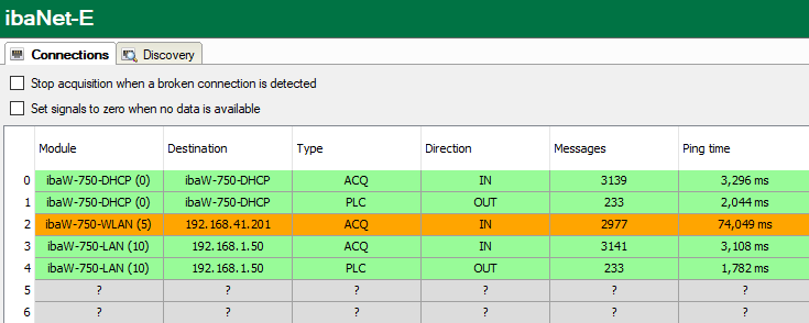 During a valid ibaNet-E receiving connection, a ping to the ibaNet-E device is executed cyclically.