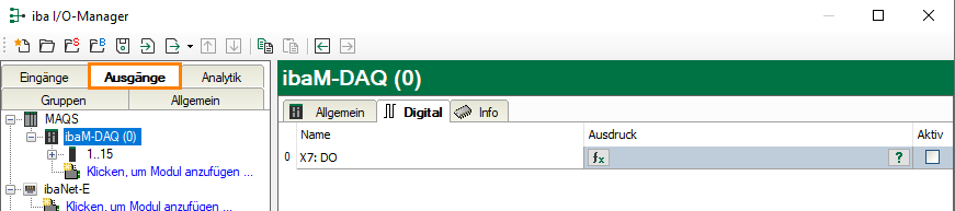 Mit Hilfe des Ausdruckseditors können den Ausgängen Signale zugewiesen werden bzw. können Signale logisch und/oder mathematisch verknüpft werden.