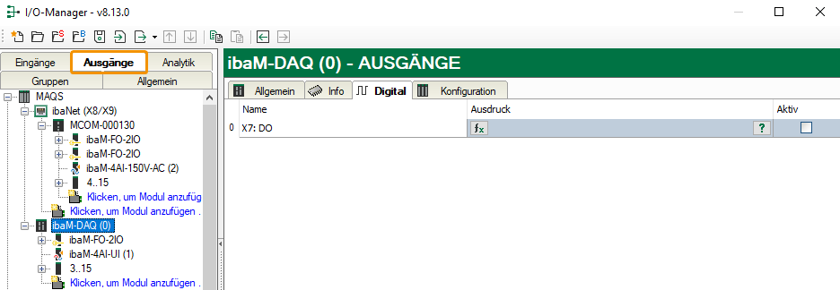 Mit Hilfe des Ausdruckseditors können den Ausgängen Signale zugewiesen werden bzw. können Signale logisch und/oder mathematisch verknüpft werden.