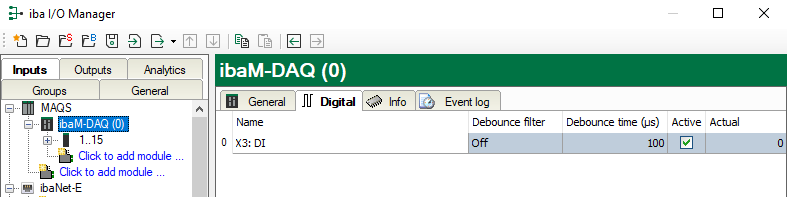 Here you can define the debounce time in μs