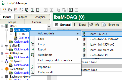 Right-click on the "ibaM-DAQ" link and select Add module.