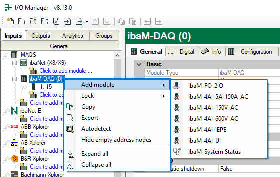 Right-click on the "ibaM-DAQ" link and select Add module.
