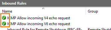 Afterwards, both rules are marked as enabled in the list via the green checkmark and ibaM-DAQ can now be found in the network via a ping command or the ICMP echo request.