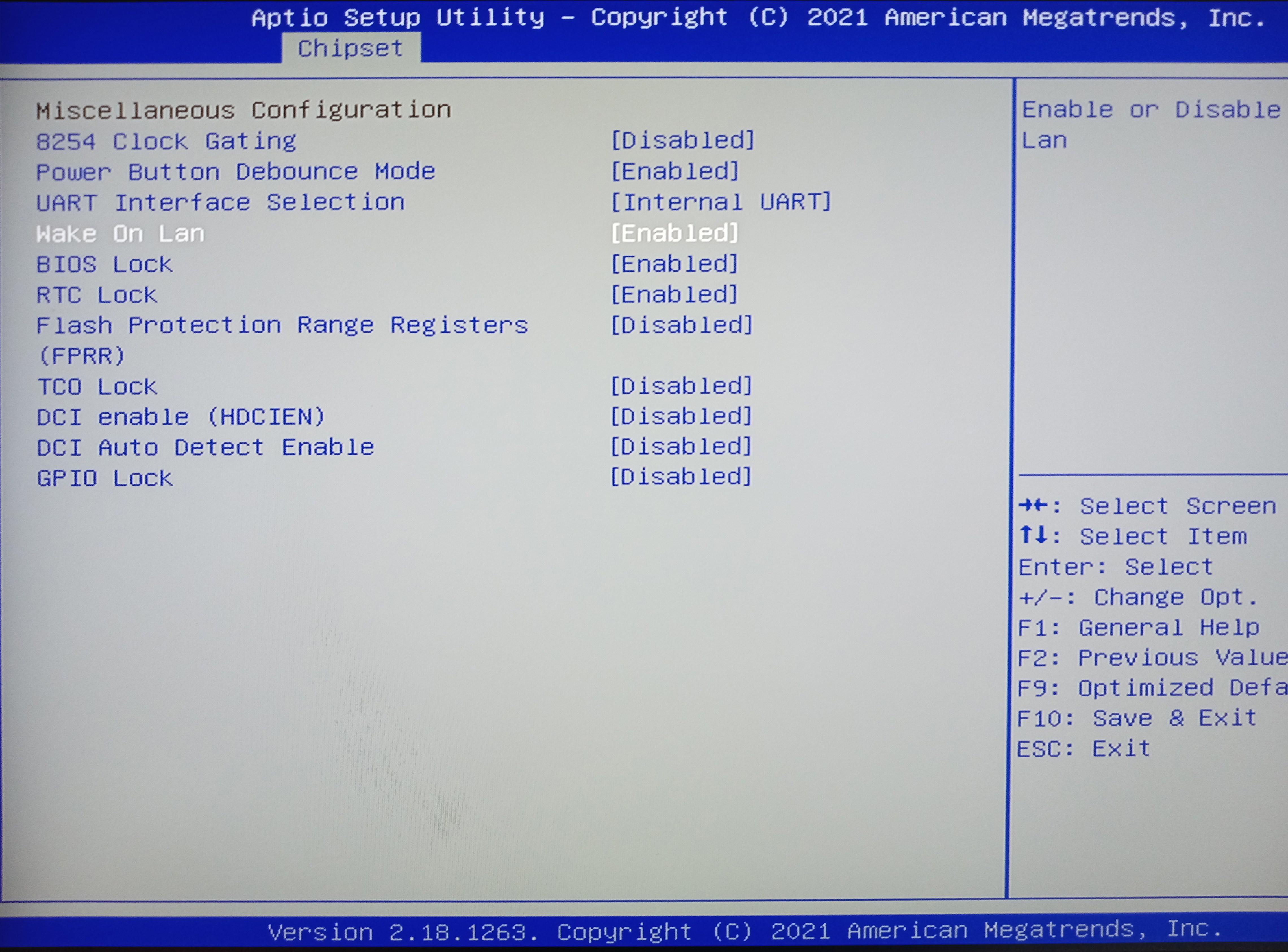 Über Chipset, South Cluster Configuration und Miscellaneous Configuration können Sie die Wake-on-Lan Einstellung aktivieren: