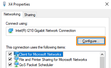 Open the properties of this interface. Open the configuration option in the properties window with the <Configure> button: