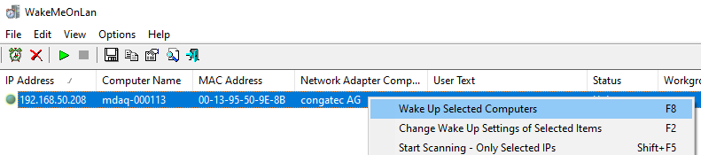 An initial check of the fully activated Wake-on-LAN function on X4 can be realized e.g. with the freeware program WakeMeOnLan.