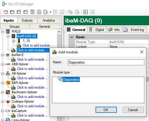 Note: The diagnostic signals reduce the ibaPDA signal license.