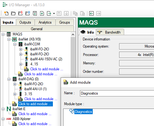 Note: The diagnostic signals reduce the ibaPDA signal license.