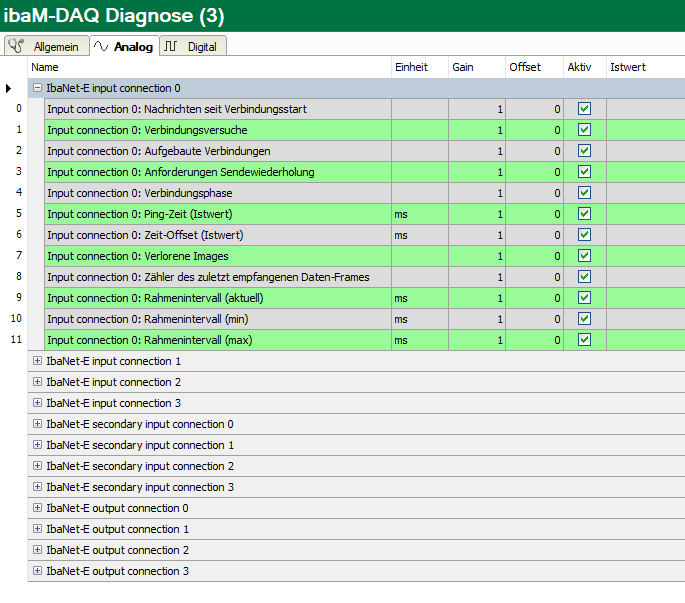 In den Registern Analog und Digital werden automatisch die verfügbaren Diagnosesignale angelegt.
