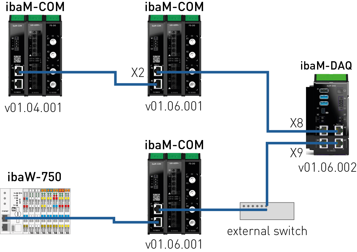 max. 10 ibaM-COM devices in a daisy chain (firmware v01.05.001 or higher)