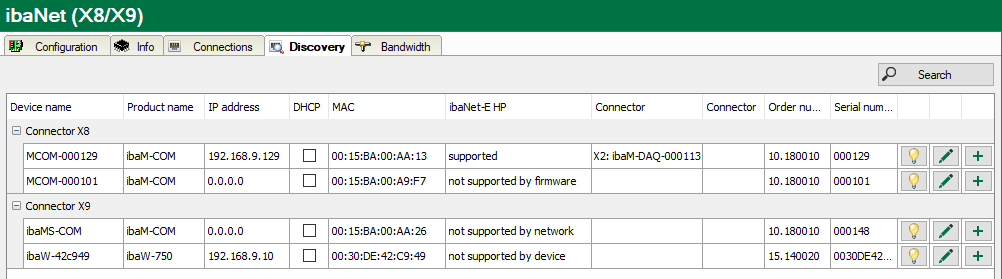 The connected device supports ibaNet-E connections with High Performance (ibaNet-E HP). |