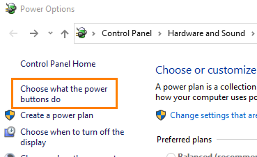 Select the menu item "Choose what the power buttons do".